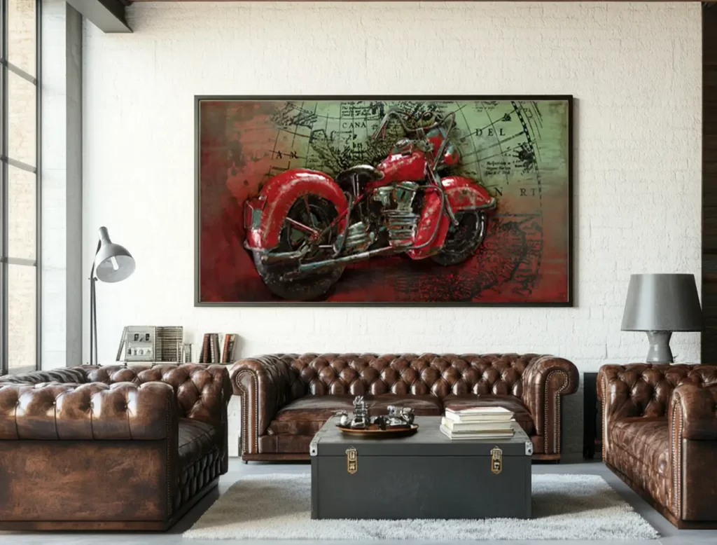 - Industrial spaces work well with raw, edgy artwork – think metal sculptures, urban photography or distressed canvas prints.