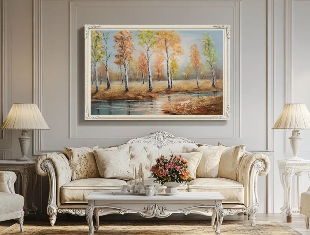 If your home tends towards a classic aesthetic, timeless oil paintings, baroque art or landscape pieces will enhance the elegance of the space.