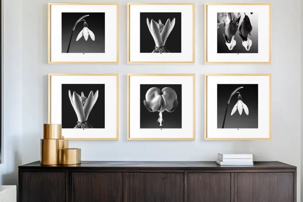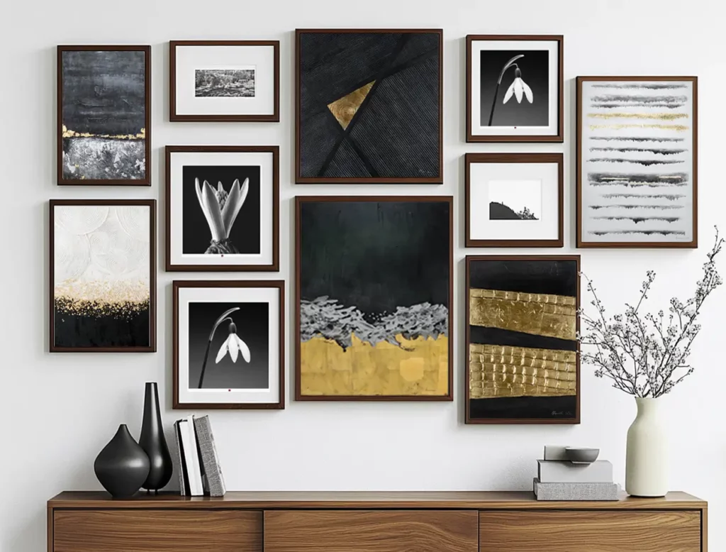 Gallery walls are a fantastic way to display multiple pieces without overwhelming a room. Stick to a common theme (colour, framing style or subject) to create cohesion.
